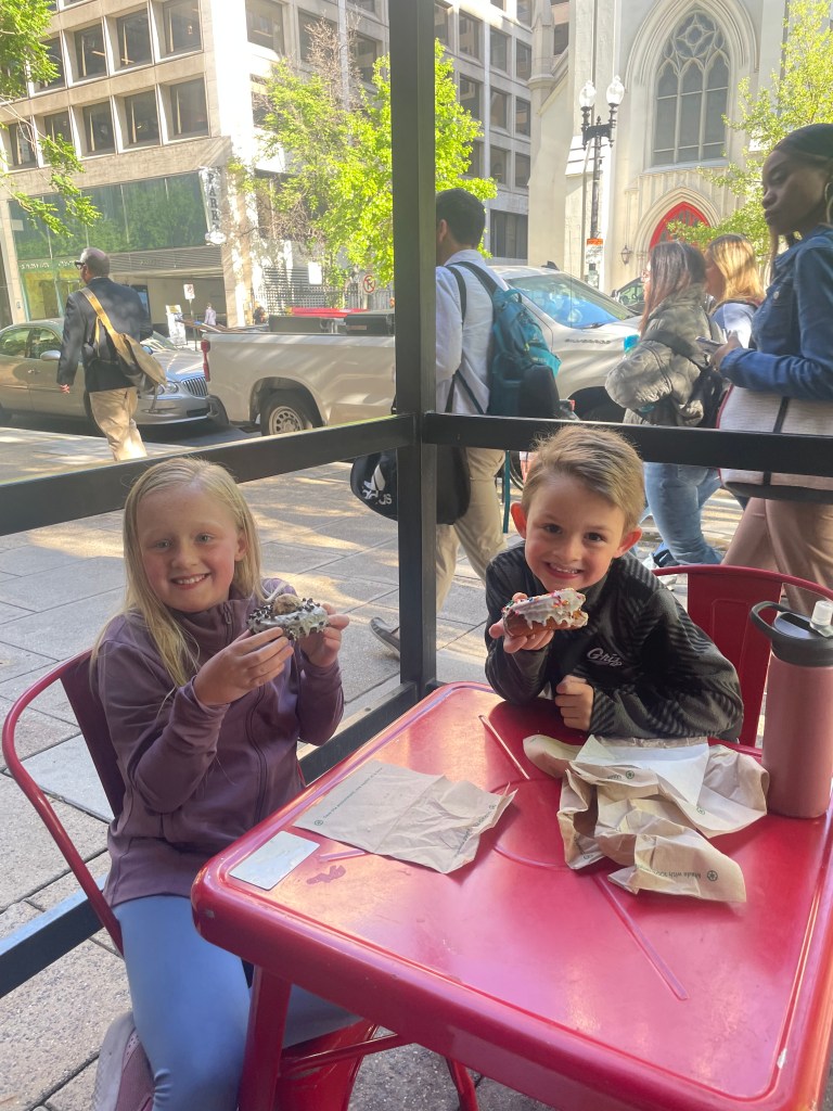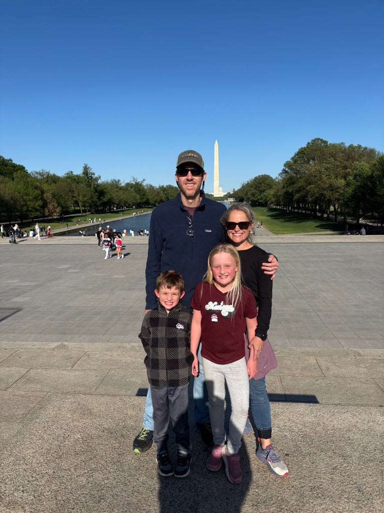 We have spent the last few days exploring the D.C. area. We had some incredible food- from Indian to Japanese to French pastries and the kids loved it all…mmm! We visited the Smithsonian Natural History Museum and could have spent days in there. Ben loved the dinosaur exhibits and Maddie was into the Geology area (thanks Uncle Bob). We also had a tour of the White House that was eye opening. We got to be in rooms within the White House where presidents as far back as Thomas Jefferson regularly spent (and continue to spend) time- pretty cool. The most impressive part for me was the security to get in and the amount of security guards and secret service within and around the White House. We visited the Smithsonian Zoo and as well and got to visit the Giant Pandas. Bens favorite thing at the zoo was the lions and tigers and Maddie liked everything! Rye and I loved watching the apes. We used the Metro (Subway) to get to the Zoo which was a fun experience for the kids. We also tried out electric scooters for transportation a few times and we all had fun, it is like going on an amusement ride. We also visited the Lincoln Memorial, reflection pool, and World War II Memorial. City life sure is exciting…and delicious. We are heading north to the Hershey, Pennsylvania area next.